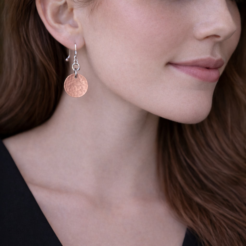 Do you ever wish your basics weren’t so...basic? Here comes copper jewelry to make that dream a reality! Simple enough to go with any outfit, but handcrafted with hammered detailing, these earrings have an undeniable knack for making your straightforward looks as special as you.