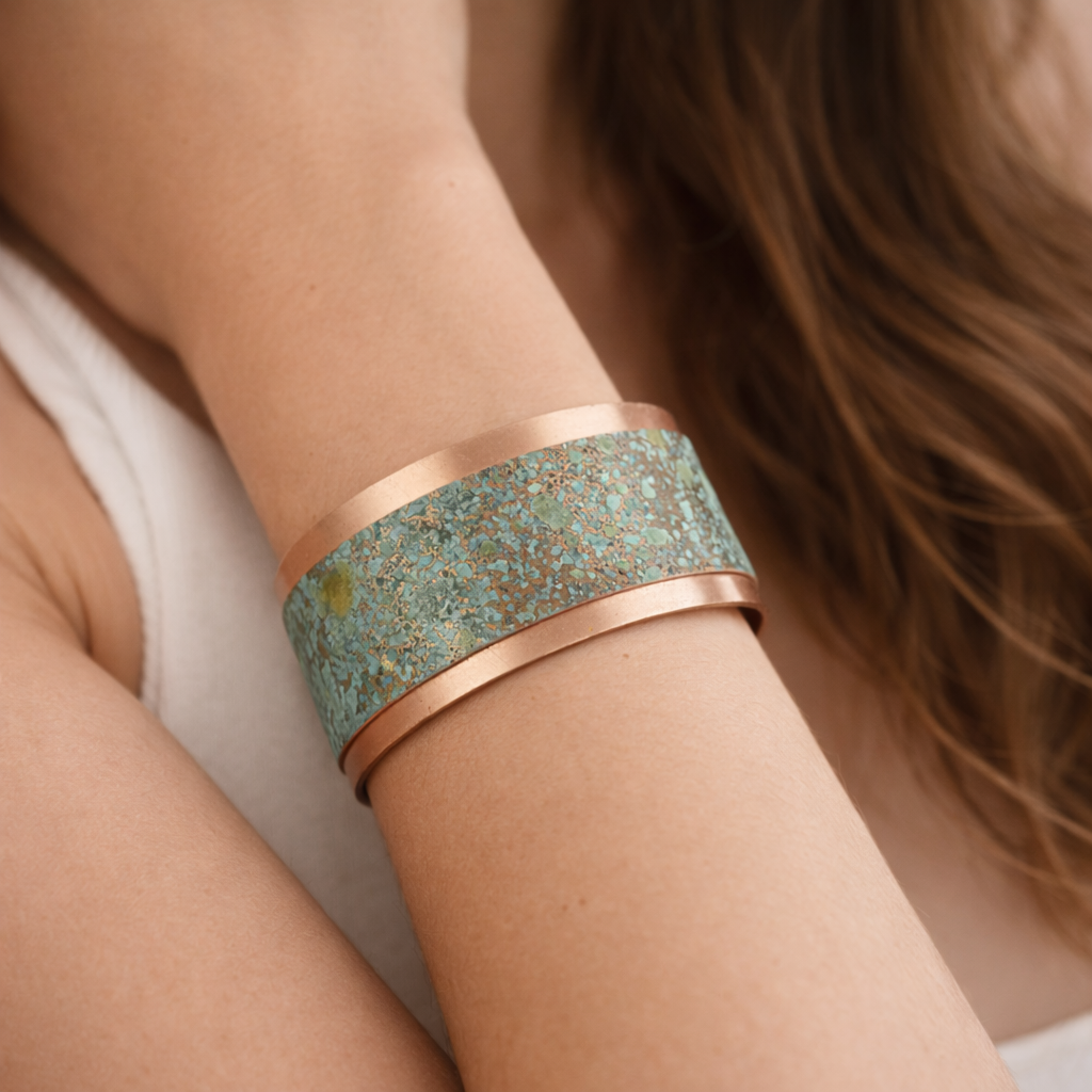 Are you known for your streak of unpredictability? So is patina jewelry! This cuff says: I am spontaneous, and I have a one-of-a-kind copper cuff bracelet to remind me to share that spontaneity with the world!