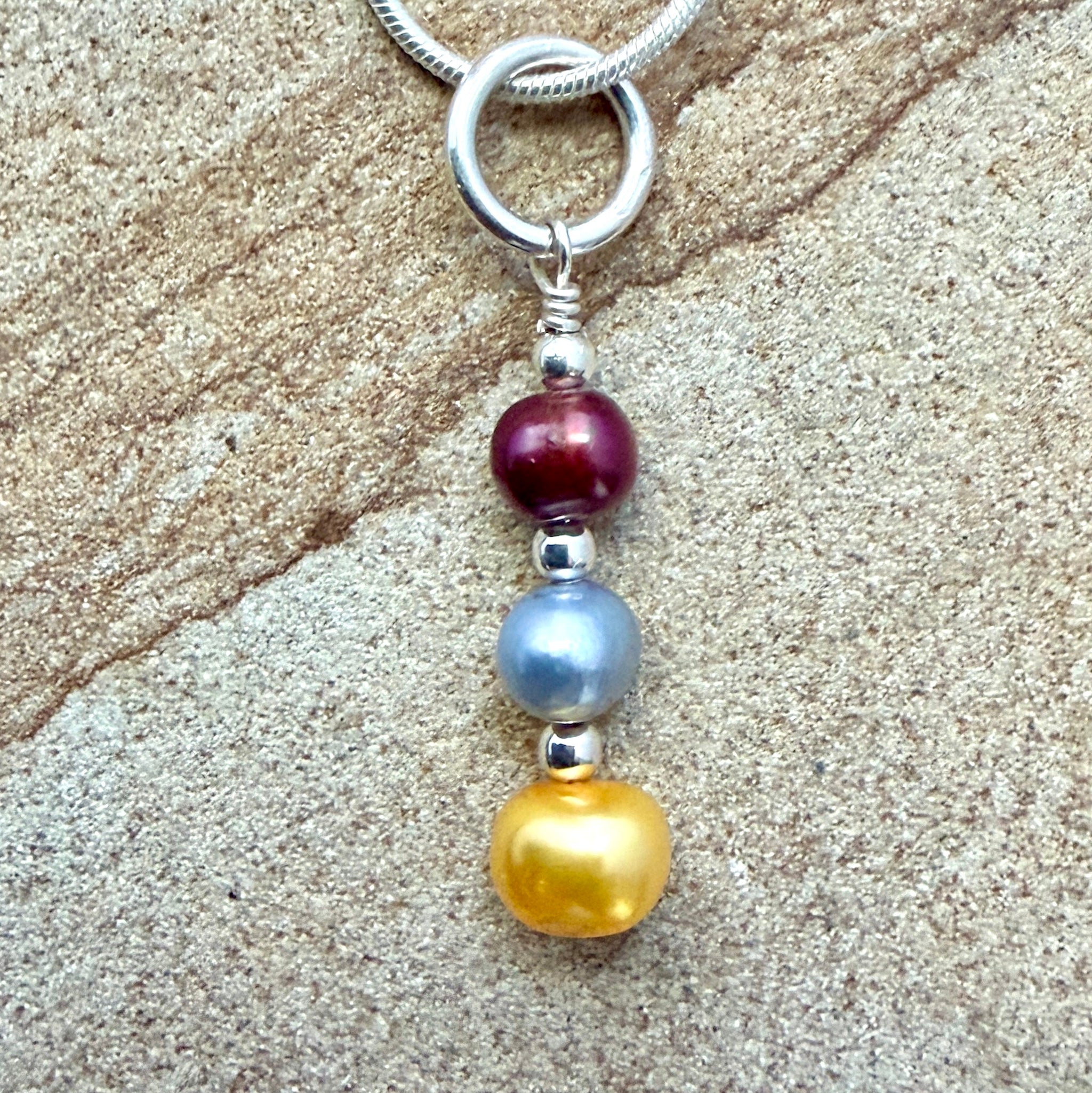 - 3 pearls, different colors and sizes