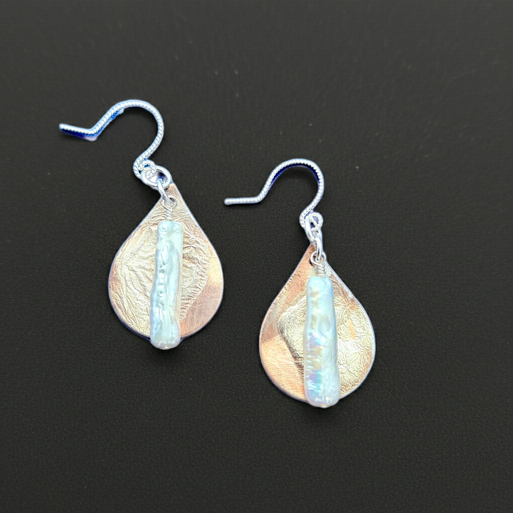 #807 Silver Fusion & White Stick Pearl Earrings